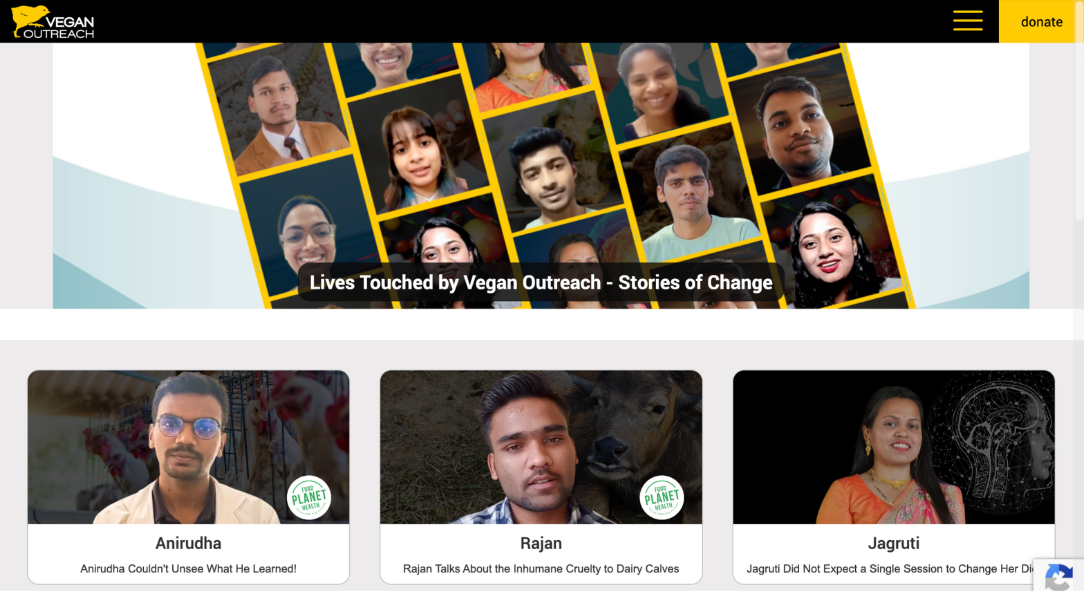 We launched a dedicated Impact Stories page to spotlight individuals who transitioned to a vegan lifestyle through Vegan Outreach.